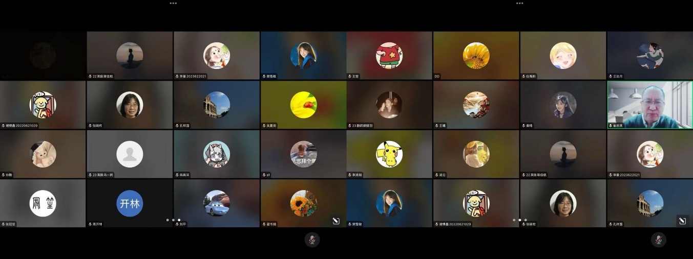 孔祥国副经理代表学院感谢崔启亮教授带来的三场精彩讲座,指出译者除了提高本身的素养外,还需结合人工智能技术,通过人机结合提高译文质量,期望同学们着手开展相关学习,也期待崔教授在下学期为我们带来更多精彩的讲座和指导。