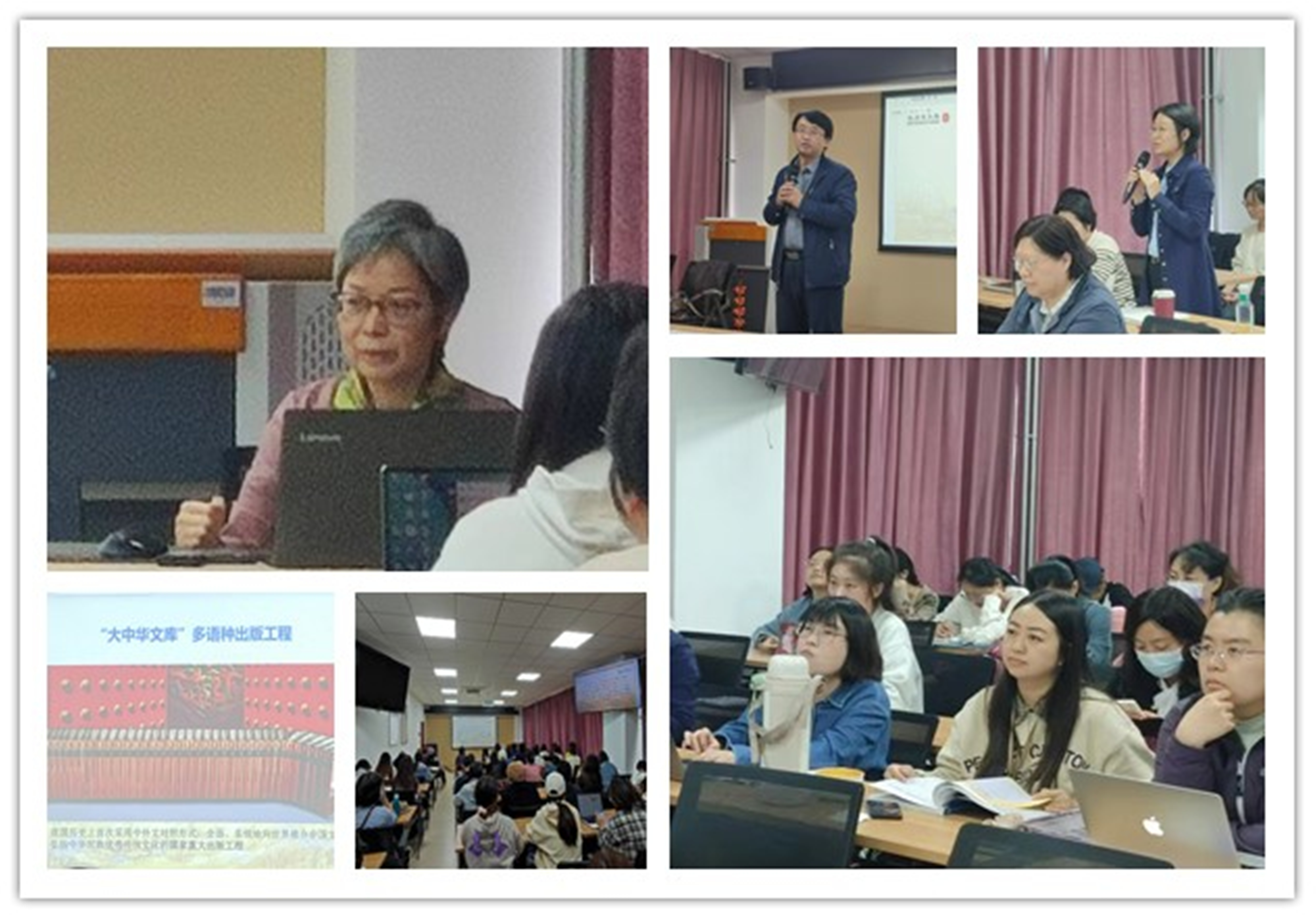 讲座伊始,黄长奇译审简要介绍了外文出版社在外宣翻译方面取得的丰硕成果,并以此为切入点,详细介绍了《习近平谈治国理政》多语种版本的翻译出版流程。随后,她基于自己多年来的译审经验,结合具体案例,为大家解读了时政话语翻译的三项基本要求:一要“读懂,学深悟透原文”;二要“译准,准确传达原意”;三要“有效,实现有效传播”。最后,她以翔实的翻译实例为支撑,总结了中国特色表述的四种英译策略,指出在准确理解原文意义的前提下,译者可以采取音译、直译、意译及直译与意译相结合的翻译策略。