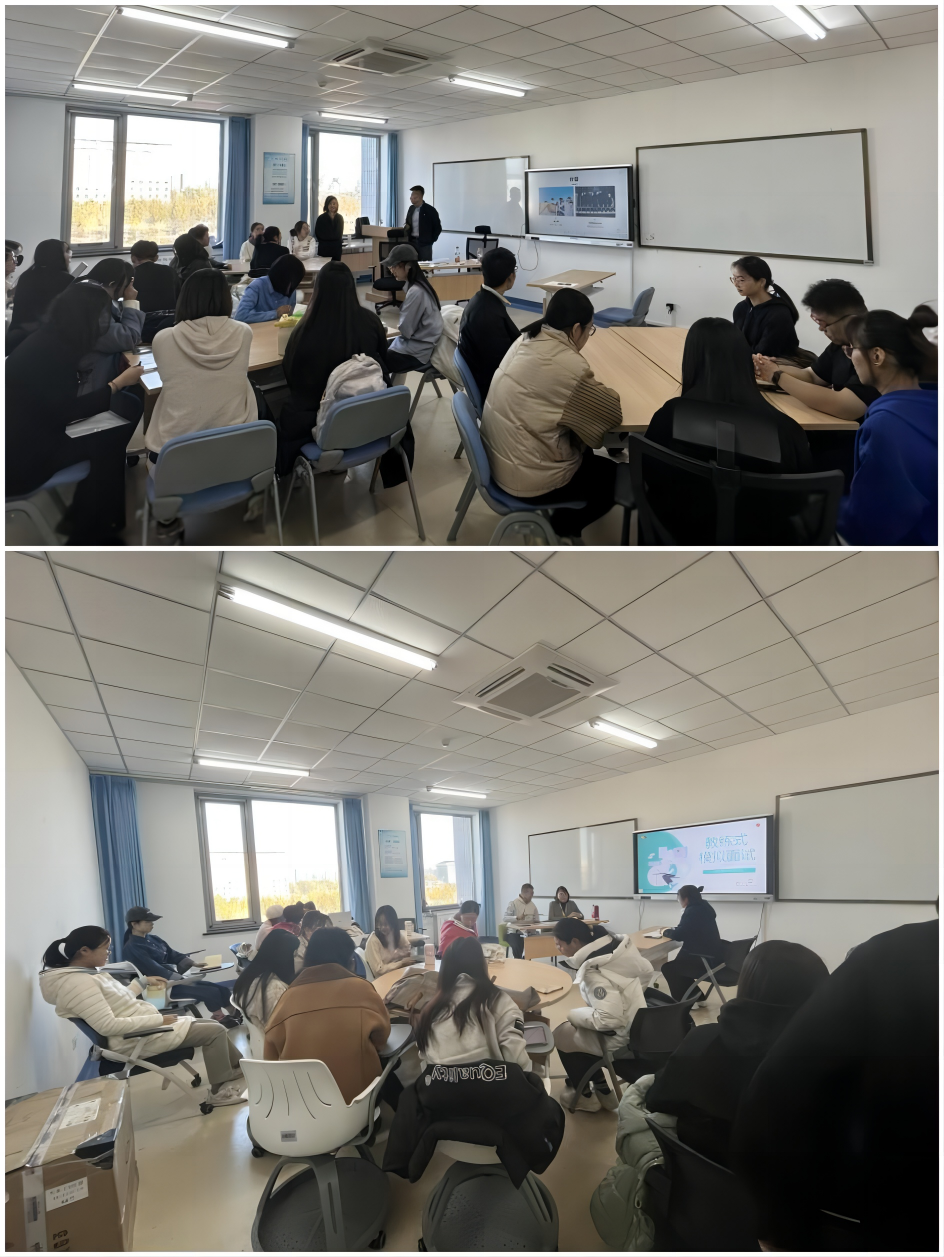 最后,活动进入了团队小组合作任务阶段,各组共同总结这次模拟面试的收获、经验和技巧。这个环节旨在促进参与者更深入的思考问题和解决问题的能力,同时增强了活动的互动性和参与度。在小组合作环节中,刘玉老师还向大家介绍了“玉见成长工作室”。该工作室依托大学丁香咨询平台,特聘校内外专业教练,面向全校同学开展职业发展、就业指导、生涯规划、个人成长、情绪压力等方面的服务,助力员工个人成长。