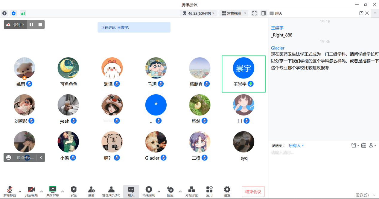在最后的答疑环节,王崇宇学长和马玥学姐耐心地为同学们答疑解惑。他们建议重视基础知识的学习,按自己的进度走,不要盲目跟别人的进度,充分利用手头的资料。对于医药卫生法学专业,要了解医学领域的知识,同时需要有法学专业的功底。