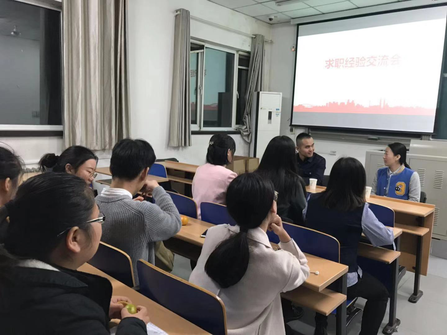崔媛媛师姐现就职于某医院医务处,从业两年有余,有丰富的医务处工作经验,崔媛媛师姐首先给大家介绍了她毕业求职过程,推荐了适合我们的求职方向,对各个就业方向的工作内容、就业前景等进行了分析,并对求职技巧给大家进行了辅导。高亮师兄现就职于某康复中心,在医疗纠纷、院务管理方面有丰富的工作经验,高亮师兄通过介绍自己的求职过程,给大家分享了自己的求职经历,包括报考公务员的经验和从事律师、投行工作的发展前景等。