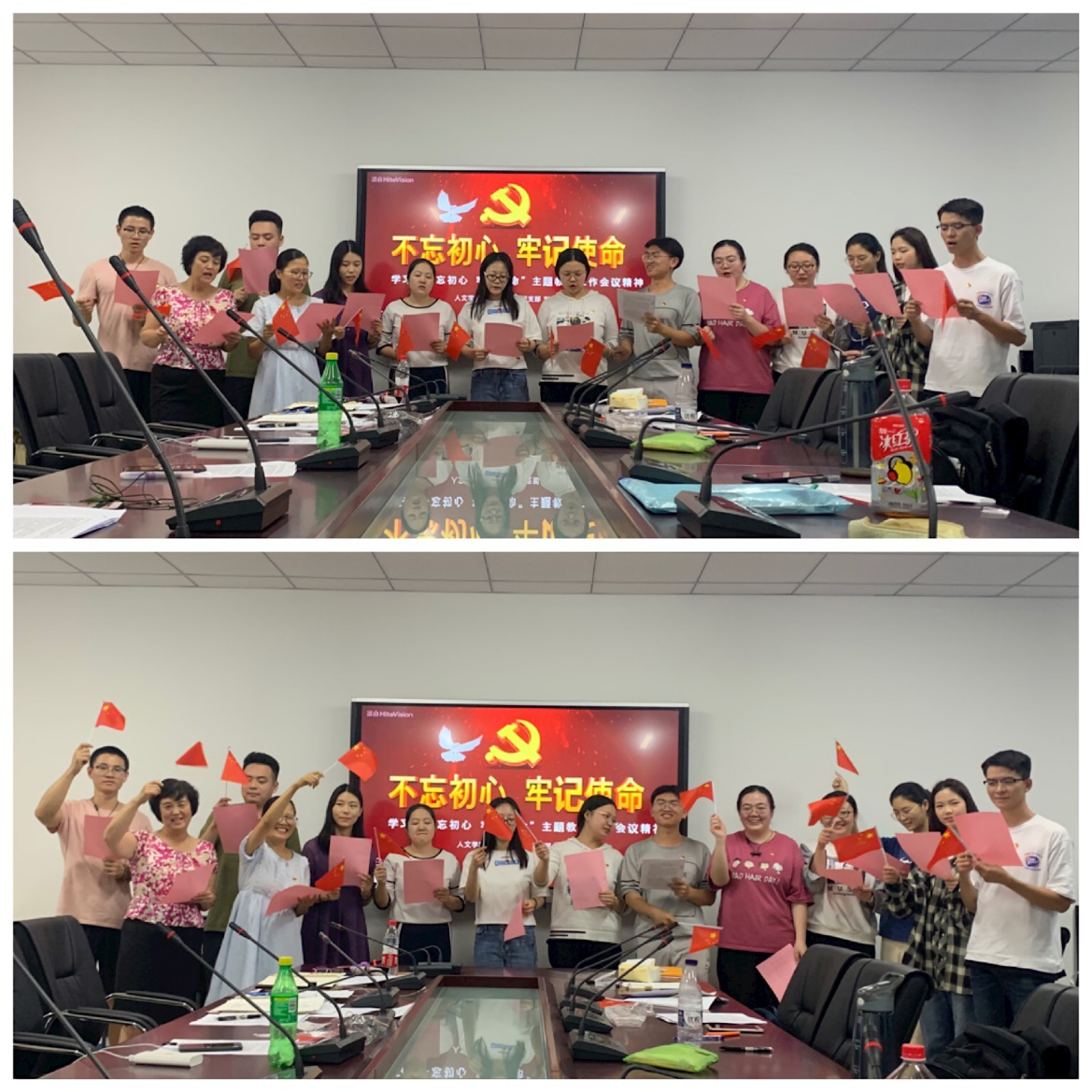 活动开始前,法学专业员工党支部全体党员认真学习了习近平在“不忘初心、牢记使命”主题教育工作会议上的讲话内容,并撰写了学习心得。本次活动分为三个部分,首先从党员同志们分享近期学习生活经历拉开序幕,法学专业员工党支部有9名党员同志面临毕业,多数同学正在紧张备考攻读硕士研究生,杜伟书记和刘玉老师认真听取了大家的分享并给予了指导和鼓励,期待大家取得好成绩。接下来是刘玉老师为员工党员讲授党课,刘玉老师讲述了开展主题教育的重大意义、目标要求、根本任务等,并结合专业学习、支部情况等要求党员同志们全面系统学、深入思考学、联系实际学,同时明确了支部“不忘初心 牢记使命”的学习活动计划,梳理了支部整改发现的问题以及整改的措施、进度等。紧接着杜伟书记做总结发言,肯定了本次活动的积极意义,并分享了自己的心得体会,鼓励大家将“不忘初心、牢记使命”践行到日常的学习工作中,并要求各位党员同志严肃党纪、认真学习,积极服务同学、在同学中起到先锋模范作用。最后正值祖国母亲70周年华诞,杜伟书记和支部全体党员同志手挥五星红旗,集体高声合唱歌曲《我和我的祖国》,共祝伟大的祖国繁荣富强。