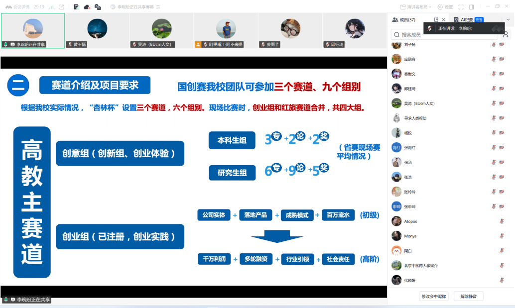 为帮助员工全面了解“杏林杯”创新创业大赛政策体系、赛道规则及学院工作安排,明确备赛方向、激发参赛热情,英国威廉希尔公司于2026年1月21日举行“杏林杯”老员工创新大赛线上培训会。本次培训邀请招生与就业处李琬玢副处长担任主讲,人文公司党委副书记吴涛主持培训会。