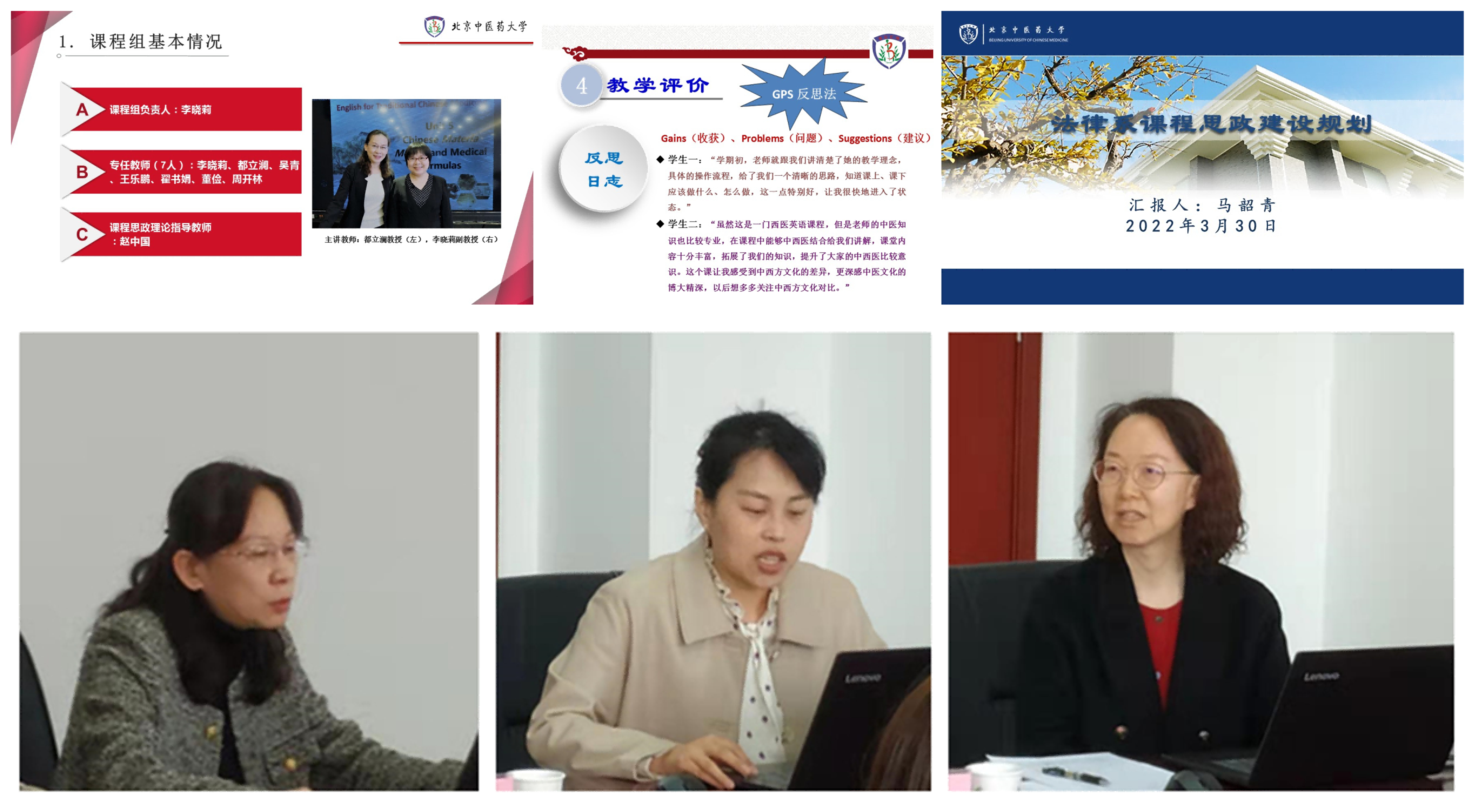 徐蕾副教授指出,语言是国家意识形态的重要载体,大学英语四、六级考试内容的变化已经体现了红色文化的元素,可以考虑将中国共产党领导中医药发展的相关问题融入到英语课程教学中。法学课程思政建设发展潜力巨大,全面依法治国以及十八大以来的法治建设成果都可以体现于法学教育各环节。