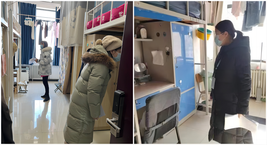 同时,党委副书记谭静带领全体辅导员检查员工宿舍安全时,提醒员工重点关注用电安全,注意防火防盗和周边治安环境等方面的安全,并强调员工们要时刻加强安全防范意识。