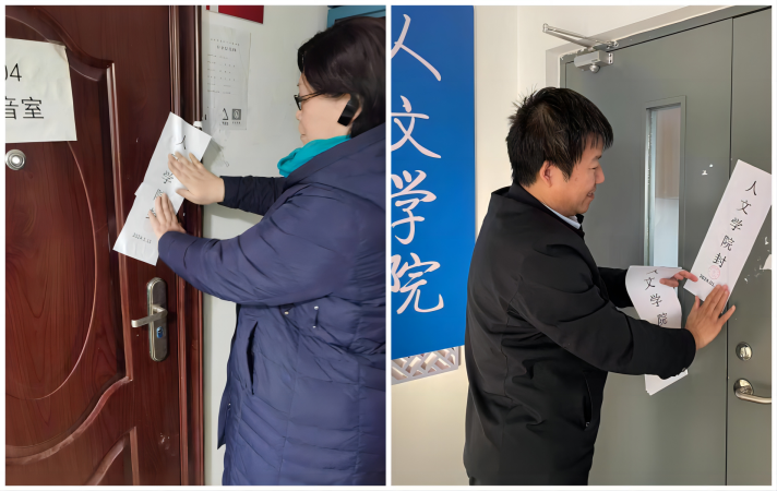 检查过程中,院领导重点围绕办公室的用电安全、消防安全等方面内容,对两校区的办公室、语音室、模拟法庭等地点逐房间进行了检查,并对假期暂不使用的办公室和教室贴上封条。针对本次检查情况,院领导强调教师们在离校前需切实保证办公室及时断电,严格检查物品存放;楼道做好杂物清理,避免闲置物品影响安全疏散;语音室要确保排除安全隐患,按标准做好警示;模拟法庭设备归位,保持良好卫生状态。