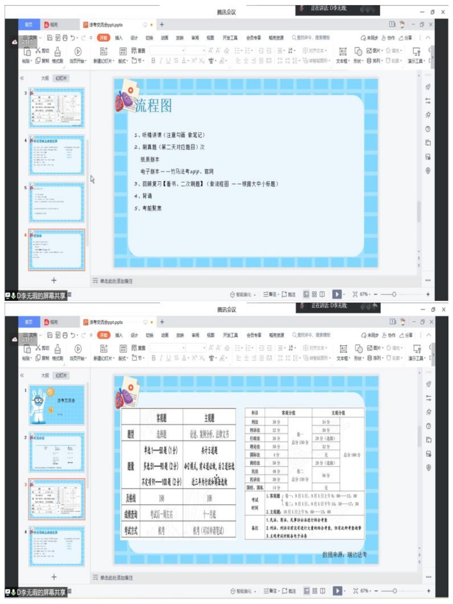 交流会上,孙姝学姐结合自身学习经验和备考经历,先向大家介绍了法考的基本信息,着重就讲师选择和备考资料进行分享。学姐强调法条定位方法的重要性,特别是三大诉讼法,建议及时进行归纳总结,不放过细碎知识点,利用好手头的资源,分享了常用学习渠道,可以提前踩点考场,做好备考心态调整。