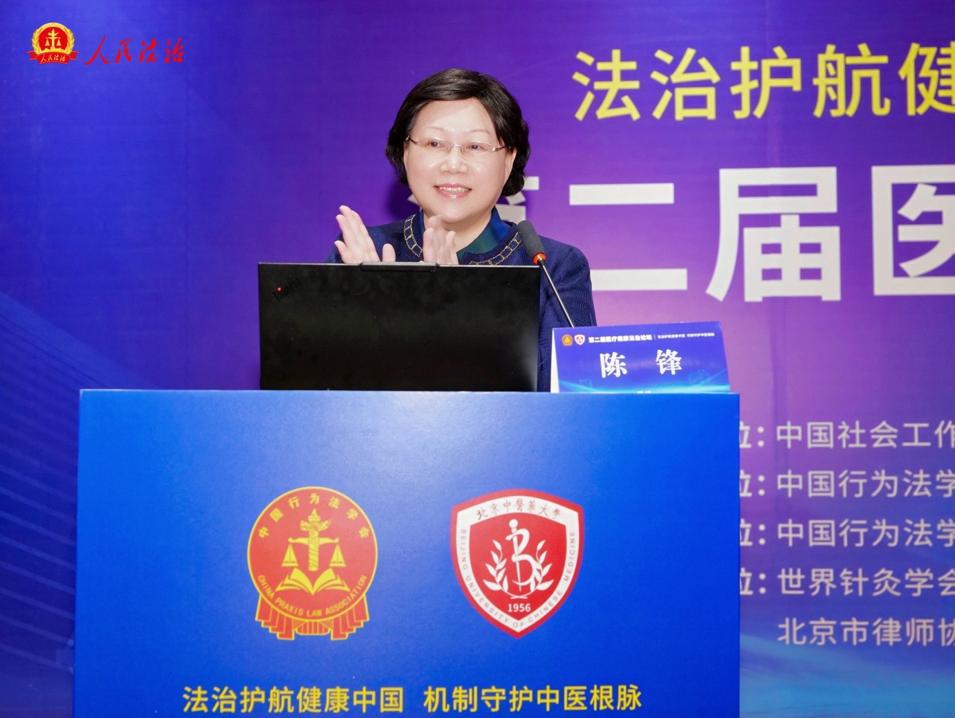 在论坛主题报告环节。多位领导、专家、学者围绕中医药法治建设、医患关系治理、医疗健康产业合规等热点问题分享真知灼见。