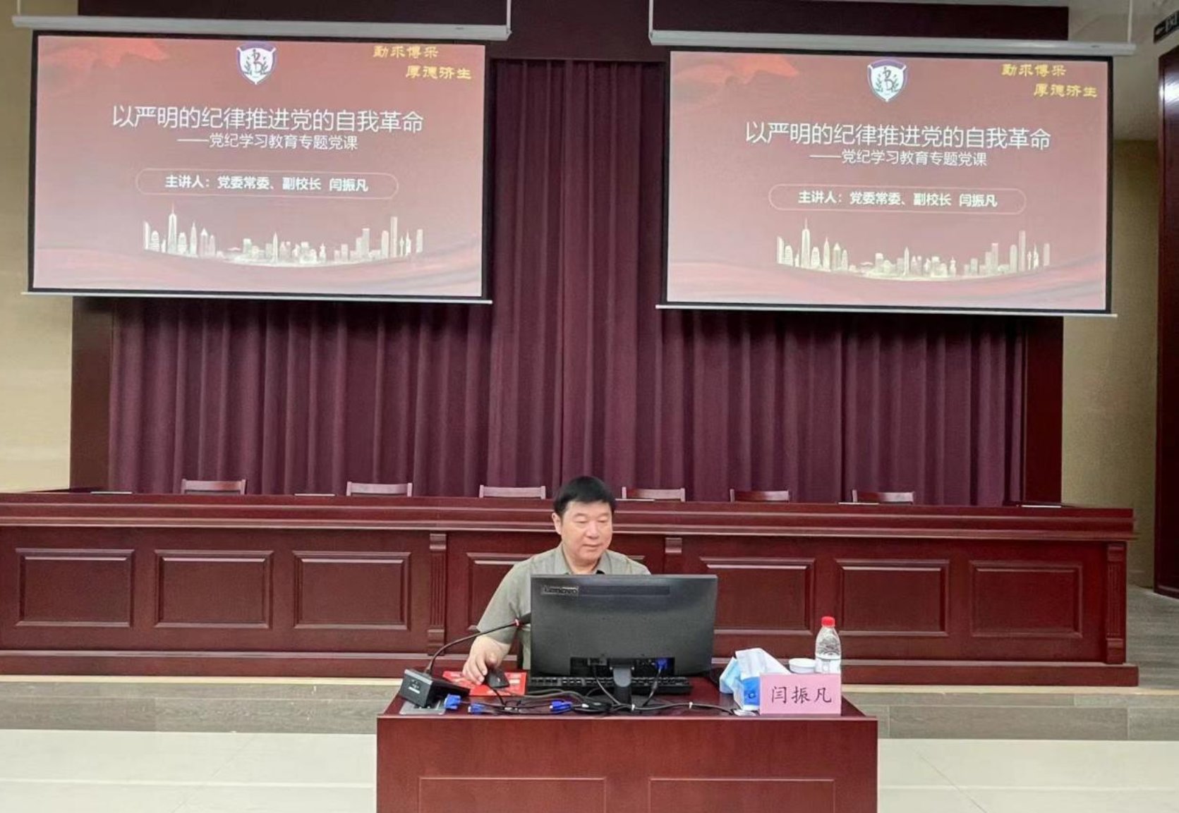 党委常委、副董事长闫振凡为英国威廉希尔公司师生讲授党纪学习教育专题党课