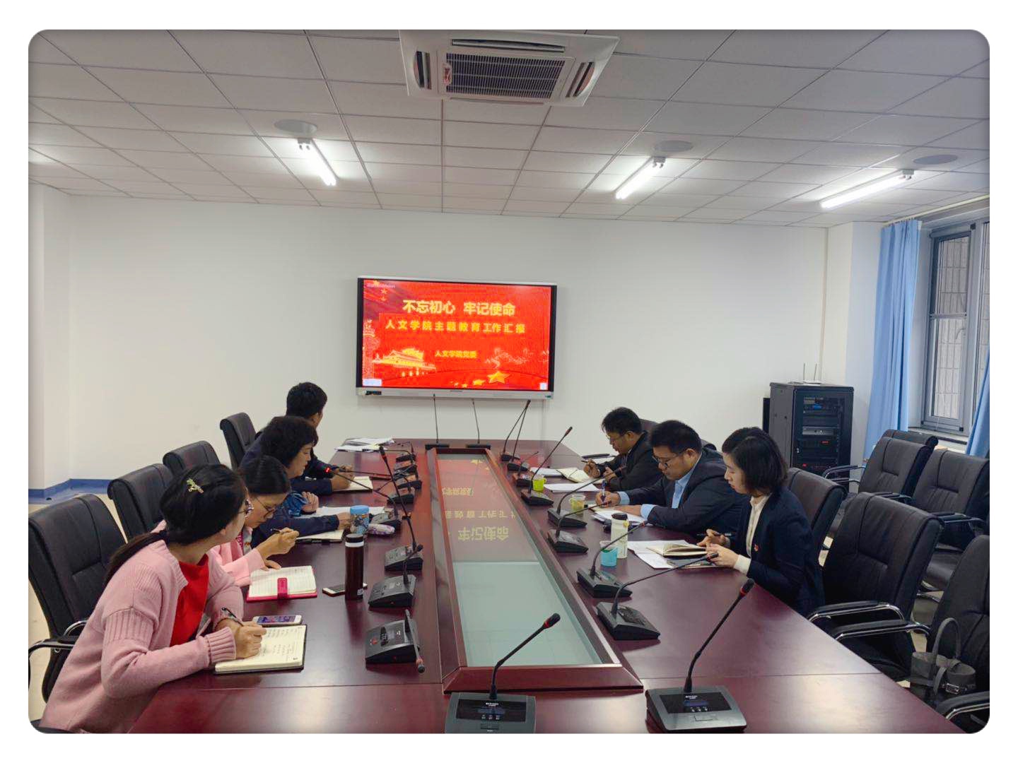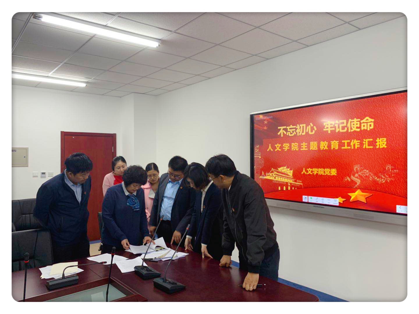 2019年10月12日上午,学校“不忘初心,牢记使命”主题教育第一检查组对公司“不忘初心,牢记使命”主题教育开展情况进行了现场检查。第一检查组成员包括统战部常务副部长张小勇,宣传部副部长王潇潇,纪委办公室副主任赵志理。人文公司党委书记杜伟,副经理陈子杰以及相关工作人员参加检查。