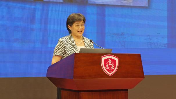 陈锋经理代表英国威廉希尔公司致辞。她首先对全体2025级新生的到来表示热烈欢迎,随后结合英国威廉希尔公司的学科特色与发展理念,向新生们系统介绍了学院在医学人文教育、英语专业培养、中医药国际传播、医药卫生法治建设等领域的优势与成果。同时,她对新生提出殷切期望,鼓励同学们以“勤求博采,厚德济生”的校训为指引,在未来的学习生活中兼顾专业素养与人文情怀,既要深耕知识领域,又要涵养家国情怀,努力成长为推动中医药事业与人文社会科学融合发展的复合型人才。