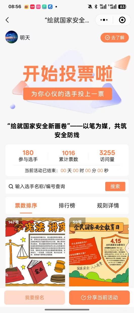 活动筹备阶段,法咨中心学术部精心策划活动方案,业务部高效完成宣传推送与物资采购,外联部联动多方资源保障活动落地。4月15日至22日,通过线上小程序征集作品,员工们踊跃投稿,一幅幅构思精巧的手抄报、色彩斑斓的绘画作品,将抽象的国家安全理念转化为具象的艺术表达。4月22日至25日,线上投票通道开启,师生们积极为心仪作品助力,以艺术张力传递守护国家安全的坚定信念。