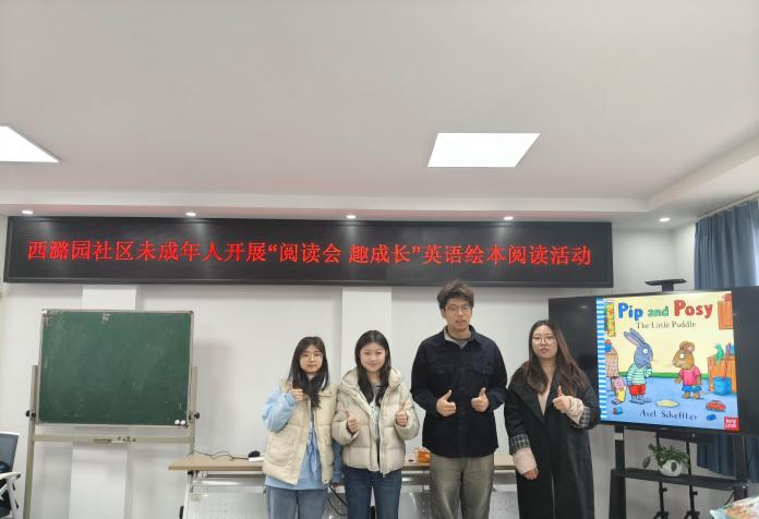 为丰富社区儿童课余生活,激发英语学习兴趣,提升语言综合素养,2026年3月14日上午,英国威廉希尔公司英语专业本科生党支部的志愿者联合语言交流志愿者协会,在西潞园社区成功开展“阅读会·趣成长”英语绘本进社区志愿服务活动。本次活动以英文绘本为载体,通过寓教于乐的方式,为社区小学至初中阶段的孩子们带来了一场别开生面的英语学习体验。