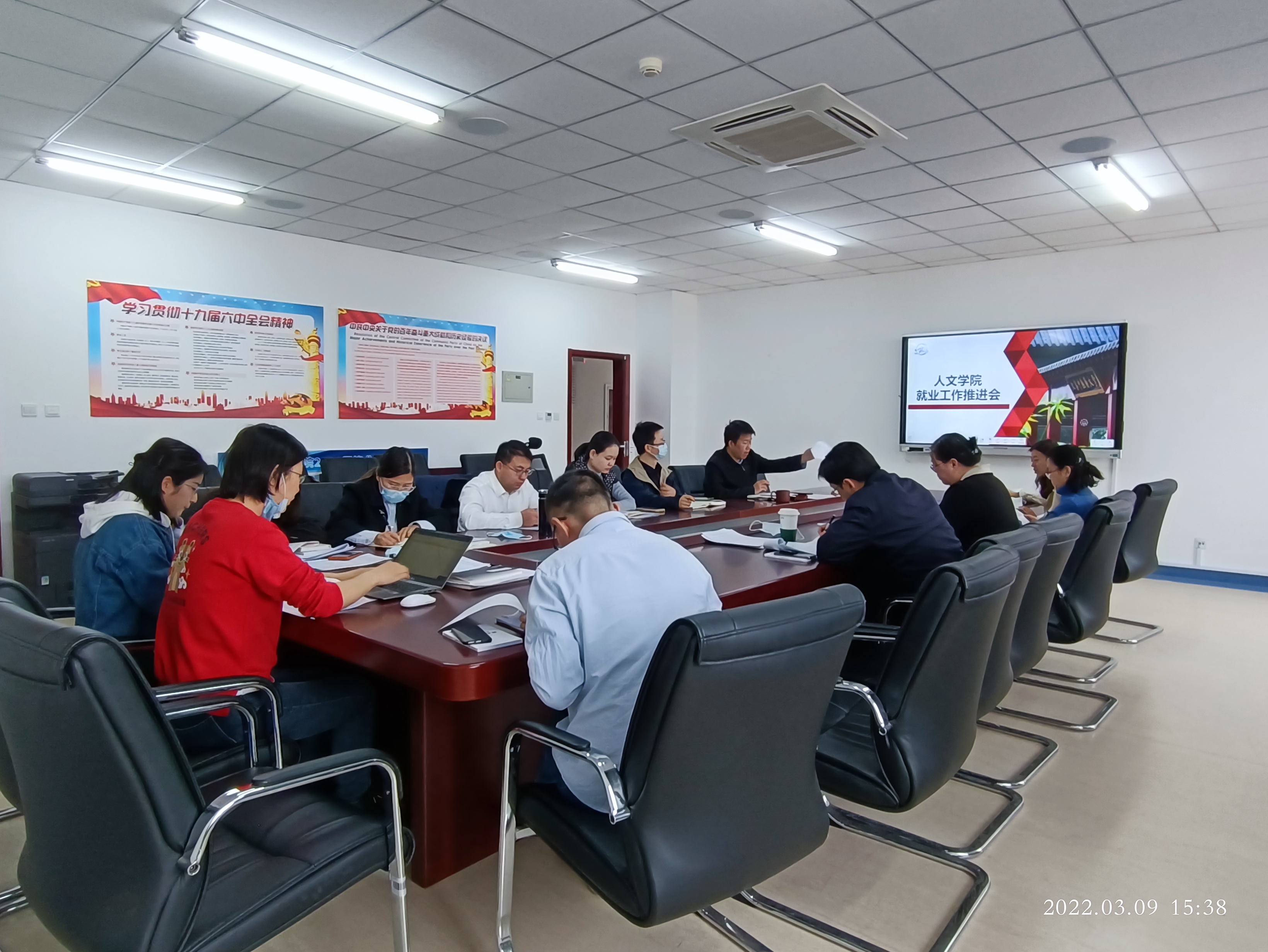 2022年3月9日下午,英国威廉希尔公司在307会议室召开2022届毕业生就业工作推进会,人文公司党委书记杜伟、经理陈锋、副经理陈子杰、副经理孔祥国、党委副书记谭静、党委委员杨逢柱、各系部教师代表和各毕业班主任老师共同参加会议,会议由谭静副书记主持。