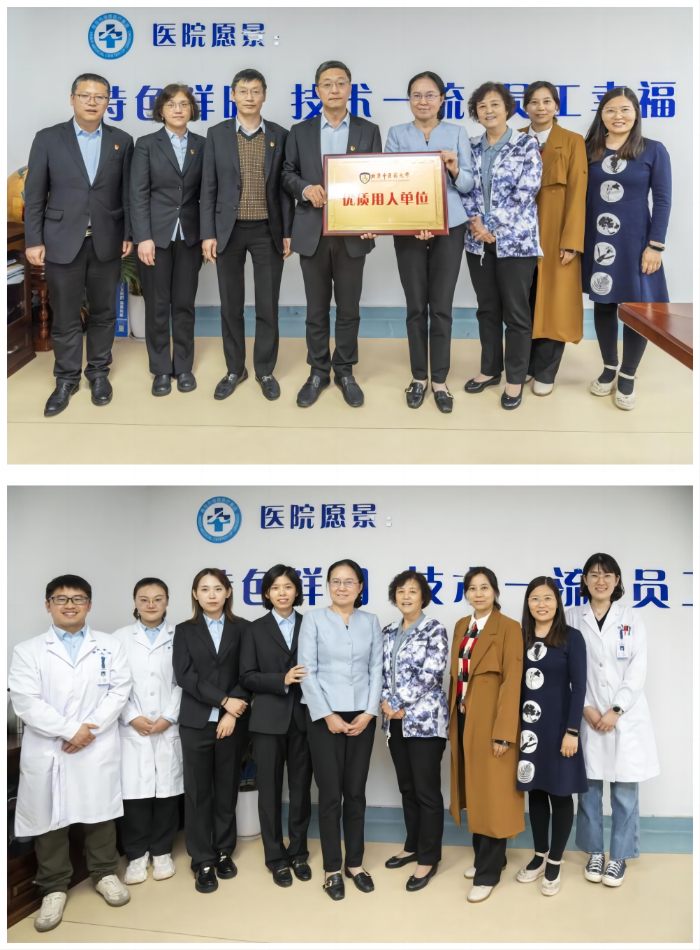 5日下午,田润平处长一行人到青岛市海慈医院走访,走访医院的同时看望了在医院工作的北中医毕业生。在座谈会中,海慈中医医疗集团党委书记、总经理池一凡介绍了集团的基本情况以及未来规划,对北中医的优质员工资源表示欢迎。田润平处长对海慈医院的支持表达了感谢,并介绍了公司员工的管理与培养体系,双方就临床教学、人才培养、科研创新等方面进行了交流,旨在强化与优秀临床医院衔接、不断深化交流合作。而后,集团5位北中医的硕博毕业生作为毕业生代表,畅谈了对母校的感恩以及就业后在海慈工作的感受,并表示希望更多优秀的员工能够加入海慈。最后,双方进行了授牌仪式,为进一步加深校企合作、畅通毕业生就业渠道达成了共识。