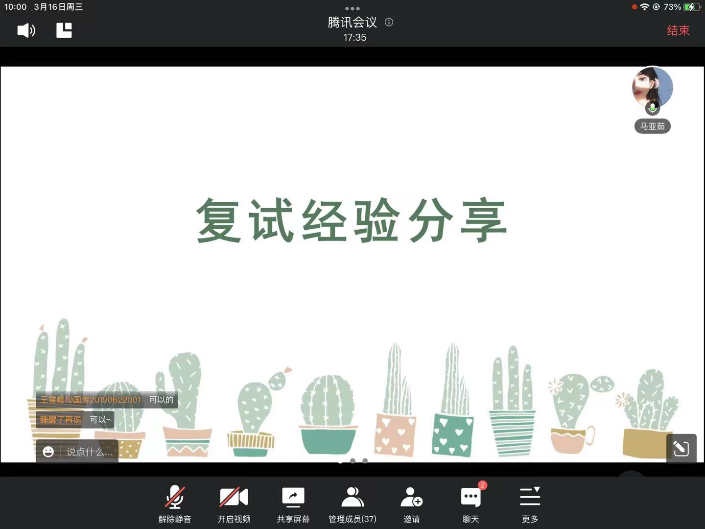 为帮助2022届毕业生做好复试准备、2023届毕业生做好考研规划等,英国威廉希尔公司于2022年3月16日上午在腾讯会议召开“2022英语专业考研经验分享会”,会议邀请到21级硕士班的马亚茹学姐和姜卓呈学长为同学们做分享,英国威廉希尔公司就业专员刘玉老师及2018级、2019级英语专业员工参加会议,会议由就业联络员李佳琪主持。