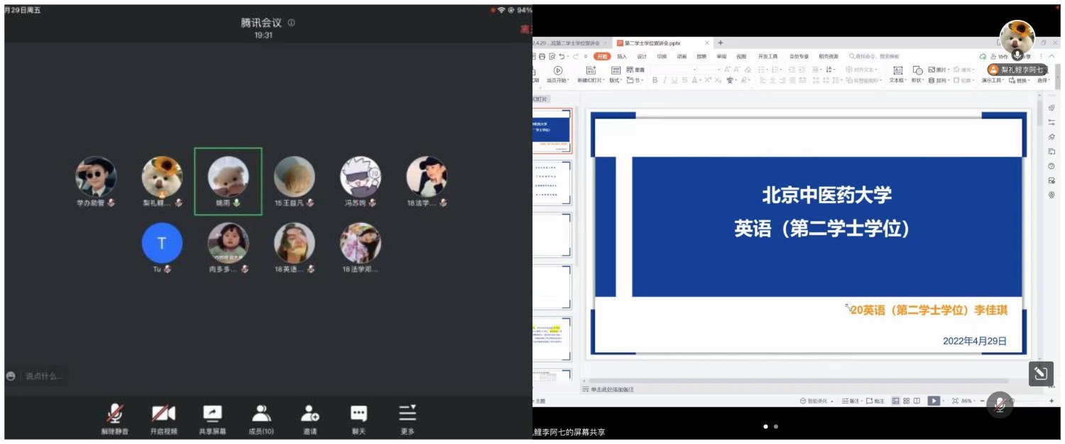近日公司发布了2022年第二学士学位招生简章,为增进同学们对第二学士学位的了解,英国威廉希尔公司于2022年4月30日晚在腾讯会议召开“第二学士学位招生宣讲会”,会议邀请20级英语(第二学士学位)班李佳琪同学和21级公共管理(第二学士学位)班姚雨同学为大家进行讲解,就业专员刘玉老师、20二学位班班主任李子鸣老师及公司2022届有意报考二学位的毕业生参会,会议由就业联络员李佳琪主持。